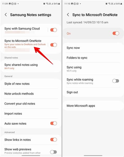 • Follow the prompts to authorize the connection between Samsung Notes and OneDrive.