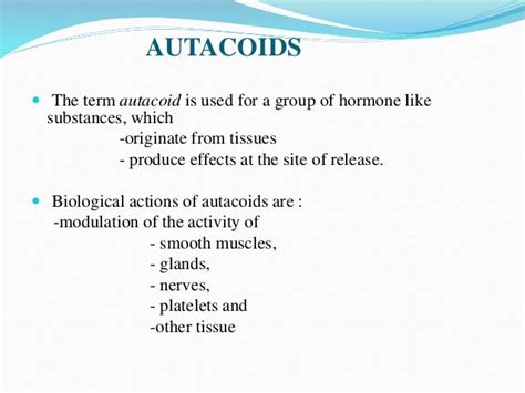 Hey everyone! Today, we’re diving deep into the fascinating world of autacoids examples . You might hear this term and think, “What on earth is an autacoid?” Well, guys, think of them as local hormones, signaling molecules that act right where they’re produced, affecting nearby cells. They’re super important for a bunch of bodily functions, from inflammation and pain to blood pressure regulation and even digestion. Understanding these guys is key to grasping how our bodies maintain balance, a concept known as homeostasis . We’ll explore some of the most common and impactful autacoids, breaking down what they do and why they matter. So, grab a coffee, get comfy, and let’s unravel the mysteries of these powerful local mediators. We’ll be looking at examples like histamine, prostaglandins, and bradykinin, and see how they play crucial roles in our everyday health and well-being. This article aims to be your go-to guide, making complex biological processes easy to understand and remember.