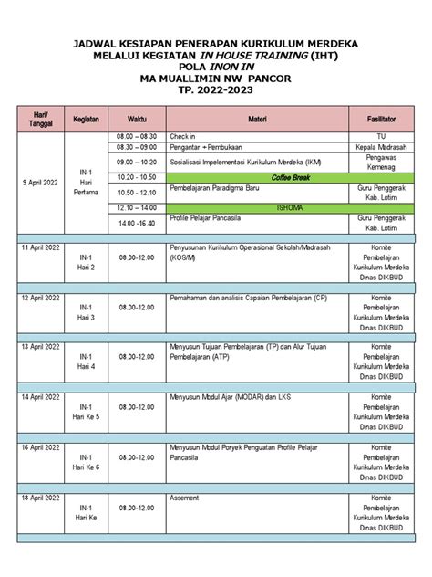 Oke, guys, sekarang kita masuk ke bagian paling seru: apa saja sih yang harus ada di banner IHT Implementasi Kurikulum Merdeka kalian agar informasinya nendang dan desainnya catchy ? Pertama dan yang paling utama, Judul yang Jelas dan Menarik . Pastikan tulisan “In House Training Implementasi Kurikulum Merdeka” atau variasi yang singkat tapi padat terlihat jelas di bagian paling atas. Gunakan font yang mudah dibaca dan ukuran yang cukup besar. Kata kunci “Implementasi Kurikulum Merdeka” harus ö*menonjol*ö. Kedua, Tujuan Pelatihan . Kenapa IHT ini diadakan? Jelaskan secara singkat tujuan utamanya. Misalnya, “Meningkatkan Pemahaman Guru tentang Pembelajaran Berdiferensiasi” atau “Menyusun Perangkat Pembelajaran Sesuai Kurikulum Merdeka”. Pesan ini haruslah singkat, padat, dan jelas . Ketiga, Waktu dan Tanggal Pelaksanaan . Ini wajib ada! Sebutkan dengan detail kapan IHT ini berlangsung. Hari, tanggal, bulan, dan tahun. Contohnya, “Kamis, 27 Juli 2023” atau “Senin-Selasa, 31 Juli - 1 Agustus 2023”. Keempat, Tempat Pelaksanaan . Di mana acara ini akan diadakan? Sebutkan lokasi spesifiknya, seperti “Aula Sekolah”, “Ruang Guru”, atau “Gedung Serbaguna”. Kelima, Narasumber/Fasilitator (Jika Ada) . Jika ada narasumber atau fasilitator yang keren, sebutkan namanya atau setidaknya jabatannya. Ini bisa menambah daya tarik peserta. Misalnya, “Bersama Bapak/Ibu [Nama Narasumber], Praktisi Pendidikan”. Keenam, Logo Sekolah dan Logo Kurikulum Merdeka (Jika Tersedia) . Menggunakan logo sekolah akan memberikan identitas resmi, sementara logo Kurikulum Merdeka (jika ada yang resmi) akan memperkuat tema acara. Ketujuh, Kontak Person atau Informasi Lebih Lanjut . Berikan nomor telepon atau alamat email yang bisa dihubungi jika ada yang ingin bertanya lebih lanjut. Ini penting untuk memastikan komunikasi berjalan lancar. Kedelapan, Visual yang Menarik . Gunakan gambar atau ilustrasi yang relevan dengan dunia pendidikan atau Kurikulum Merdeka. Bisa berupa gambar siswa yang berdiskusi, guru yang mengajar dengan metode inovatif, atau elemen grafis yang cerah dan inspiratif. Hindari gambar yang terlalu ramai atau norak . Kesembilan, Skema Warna yang Konsisten . Pilih skema warna yang sesuai dengan tema Kurikulum Merdeka atau identitas sekolah. Gunakan warna-warna yang cerah namun tidak menyakitkan mata, serta pastikan kontras antara teks dan latar belakang cukup baik agar mudah dibaca. Terakhir, Call to Action (Opsional tapi disarankan) . Misalnya, “Daftar Sekarang!” atau “Jangan Lewatkan Kesempatan Berharga Ini!”. Dengan memasukkan semua elemen kunci ini, banner IHT Implementasi Kurikulum Merdeka kalian akan menjadi media informasi yang sangat efektif dan profesional. Ingat, guys, detail kecil itu penting banget!