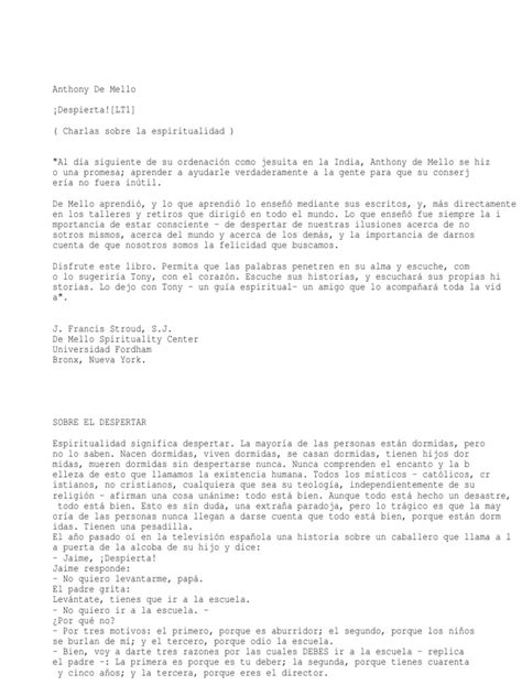 Are you looking for Anthony de Mello’s ‘Despierta’ book in PDF format and want to download it for free? Well, you’re in the right place! Anthony de Mello, a renowned Jesuit priest and psychotherapist, has touched countless lives with his profound teachings on spirituality, self-awareness, and the path to inner peace. His book ‘Despierta’ (Wake Up!) is a powerful collection of insights and meditations designed to jolt us out of our complacency and lead us towards a more authentic and fulfilling existence. In this article, we’ll explore why ‘Despierta’ is such a transformative read, where you might find it in PDF form for free, and some alternative ways to access his wisdom.