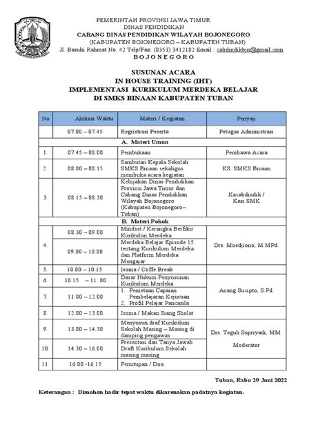 So, what exactly is Ijadwal IHT Kurikulum Merdeka SD ? Let’s break it down. Ijadwal simply means schedule, IHT stands for In-House Training, Kurikulum Merdeka is the independent curriculum, and SD refers to Sekolah Dasar, which is elementary school in Indonesian. So, Ijadwal IHT Kurikulum Merdeka SD refers to the schedule for in-house training programs designed to help elementary school teachers and staff understand and implement the Kurikulum Merdeka . The Kurikulum Merdeka is a new educational framework in Indonesia that aims to provide more flexibility and relevance in the learning process. Unlike the previous curriculum, Kurikulum Merdeka emphasizes student-centered learning, where the focus is on developing students’ competencies and character through project-based learning and contextual teaching. It encourages teachers to adapt the curriculum to the specific needs and contexts of their students and schools. This curriculum also aims to reduce the amount of material covered, allowing for deeper learning and more time for developing essential skills. IHT is a crucial component of successfully implementing Kurikulum Merdeka . It is a training program conducted within the school environment, facilitated by experienced educators or external experts. The goal of IHT is to equip teachers with the knowledge, skills, and confidence they need to effectively teach using the Kurikulum Merdeka framework. The training typically covers various aspects of the curriculum, including its principles, learning objectives, teaching strategies, assessment methods, and the use of technology in education. It provides a platform for teachers to collaborate, share best practices, and address challenges they may encounter during implementation. Effective IHT sessions are interactive and practical, involving hands-on activities, group discussions, and simulations. They are designed to be relevant to the teachers’ specific needs and the context of their school. The Ijadwal , or schedule, is a detailed plan that outlines the topics, activities, speakers, and timelines for the IHT program. A well-structured Ijadwal ensures that the training is comprehensive, efficient, and aligned with the school’s overall goals. It takes into account the teachers’ availability, the school calendar, and the specific needs of the curriculum. Creating an effective Ijadwal involves careful planning and coordination among the school principal, curriculum team, and training facilitators. The schedule should be communicated clearly to all participants, and feedback should be collected to make adjustments as needed. Ultimately, the success of Ijadwal IHT Kurikulum Merdeka SD depends on the commitment and collaboration of all stakeholders. By investing in high-quality training and providing ongoing support, schools can empower their teachers to deliver engaging and effective learning experiences that prepare students for success in the 21st century. Therefore, understanding the essence and components of Ijadwal IHT Kurikulum Merdeka SD is the foundational step in ensuring a smooth and successful transition to this innovative curriculum. With the right planning, resources, and support, elementary schools can unlock the full potential of Kurikulum Merdeka and create a brighter future for their students.
