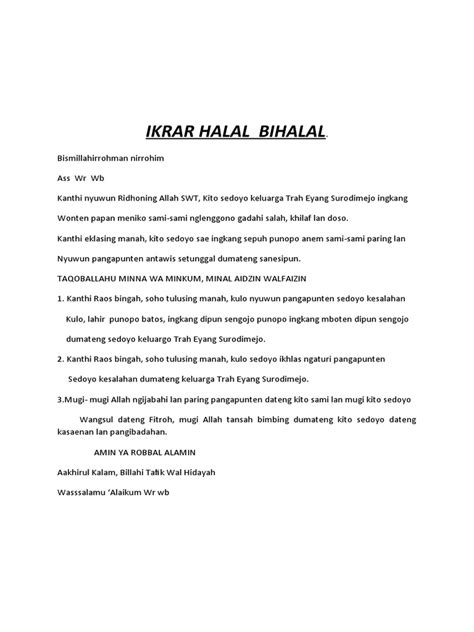 So, there you have it! Ikrar Halal Bihalal in Javanese is a beautiful tradition that promotes forgiveness, reconciliation, and stronger community bonds. By understanding the significance of Halal Bihalal and the ikrar , knowing common Javanese phrases, and following tips for effective delivery, you can make this tradition even more meaningful. Embrace the spirit of Halal Bihalal and let it guide you towards a more connected and compassionate life. Happy Halal Bihalal , everyone!