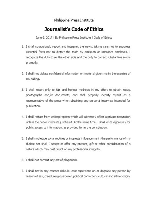 Finally, the code addresses Avoiding Conflicts of Interest . This is crucial for maintaining public trust. Journalists must avoid situations where their personal, financial, or political interests could compromise their ability to report fairly and objectively. This might mean recusing themselves from stories where they have a personal connection or disclosing potential conflicts to their editors. Transparency about potential conflicts is key. If a journalist stands to gain or lose something from a story, or has a strong personal stake in it, that needs to be managed carefully to ensure the reporting remains unbiased. It’s about keeping the focus squarely on the story and the public interest, not on personal agendas.