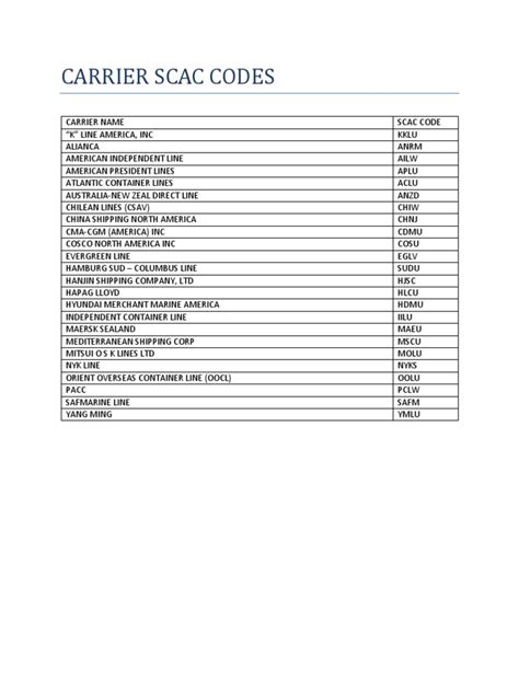 SCAC stands for Standard Carrier Alpha Code. Think of it as a unique identifier for transportation companies, used primarily in the United States and Canada. These codes are essential for various logistical processes, including tracking shipments, streamlining communication between carriers and shippers, and ensuring accurate billing. The National Motor Freight Traffic Association (NMFTA) assigns and manages these codes, making sure that each carrier has its own distinct mark in the vast ocean of transportation. Understanding the importance of these codes can really streamline your shipping processes, avoid confusion, and ensure your goods get where they need to go without a hitch. They act as a universal language within the transportation industry, facilitating smoother operations across different companies and systems. Having a grasp of SCAC codes can save you time, reduce errors, and improve overall efficiency in your logistics management . For instance, when you’re dealing with electronic data interchange (EDI), SCAC codes are vital for accurately transmitting information between parties, ensuring that everyone is on the same page. In essence, SCAC codes are the unsung heroes of the supply chain, quietly working behind the scenes to keep things moving smoothly. Without them, the potential for miscommunication and logistical nightmares would be significantly higher. So, whether you’re shipping goods across the country or managing a complex international supply chain, understanding and utilizing SCAC codes is a fundamental aspect of successful logistics operations. Remember, these codes are not just random letters; they represent a carrier’s identity and play a key role in the seamless flow of goods from origin to destination. So, keep them in mind and use them wisely to optimize your shipping strategies and maintain a competitive edge in the fast-paced world of transportation.
