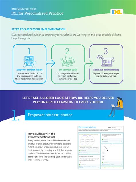 Using the IXL program offers a plethora of benefits for students, teachers, and parents alike. For students, one of the primary advantages is personalized learning. IXL adapts to each student’s skill level, providing targeted practice that helps them master concepts at their own pace. This means no more feeling left behind or bored in class. The program identifies knowledge gaps and provides customized exercises to fill those gaps, ensuring a strong foundation in each subject. This personalized approach also fosters a sense of accomplishment as students see their progress and gain confidence in their abilities. Another significant benefit for students is the immediate feedback they receive on their work. IXL provides instant explanations for both correct and incorrect answers, helping students understand the underlying concepts and avoid making the same mistakes in the future. This immediate feedback loop is crucial for effective learning, as it allows students to learn from their errors and reinforce their understanding in real-time. Furthermore, IXL offers a wide range of practice questions and activities that cover a variety of topics and skills. This comprehensive coverage ensures that students are exposed to all the material they need to succeed in their coursework and beyond. Whether they’re struggling with algebra, grammar, or science, IXL has the resources to help them master the material. For teachers, IXL provides valuable data and insights into student performance. The program tracks student progress and provides detailed reports that show which skills students have mastered and which ones they need more practice with. This data-driven approach allows teachers to tailor their instruction to meet the individual needs of their students and provide targeted support where it’s needed most. In addition to tracking student progress, IXL also offers a variety of tools and resources that teachers can use to enhance their instruction. These include pre-made lesson plans, interactive activities, and assessment tools that can be easily integrated into the classroom. By using IXL , teachers can save time on lesson planning and assessment, allowing them to focus on delivering high-quality instruction to their students. Parents also benefit from using IXL , as it allows them to stay informed about their child’s academic progress. IXL provides parents with access to detailed reports that show their child’s strengths and weaknesses, as well as their overall progress in each subject. This allows parents to have informed conversations with their child about their learning and provide additional support at home. Furthermore, IXL offers a variety of resources and activities that parents can use to supplement their child’s learning at home. These include practice exercises, educational games, and online tutorials that can help children master key concepts and improve their academic performance. By using IXL , parents can play an active role in their child’s education and help them achieve their full potential.
