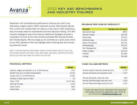 ASC benchmarks are essentially the vital signs of the industry. These benchmarks provide crucial insights into the financial , operational , and clinical performance of ASCs. Monitoring these metrics allows centers to identify areas of strength and weakness, implement targeted improvements, and ultimately, enhance patient care and profitability. Here’s a deeper look at why these benchmarks matter so much: