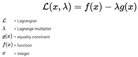 Set up the Lagrange function: This is where the multiplier, usually denoted by \(\lambda\) (lambda), comes in. We create a new function, often called the Lagrangian, \(L\) , by combining our objective function and the constraint. The general form is \(L(x, y, \lambda) = f(x, y) - \lambda(g(x, y) - c)\) , where \(f(x, y)\) is our objective function, \(g(x, y)\) is the constraint function, and \(c\) is the constant value of the constraint. In our case, \(f(x, y) = xy\) and \(g(x, y) = 2x + 2y\) , with \(c = 100\) . So, our Lagrangian is: $ \(L(x, y, \lambda) = xy - \lambda(2x + 2y - 100)\) \( The magic here is that the maximum (or minimum) of \) A(x, y) \( subject to the constraint \) 2x + 2y = 100 \( will occur at a point where the gradient of \) A \( is parallel to the gradient of the constraint function. Taking the partial derivatives of \) L \( with respect to \) x \(, \) y \(, and \) \lambda$ and setting them to zero helps us find this point.