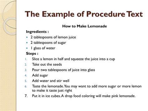 Before we jump into the examples, let’s quickly recap what a procedure text actually is. A procedure text is a type of text that gives instructions on how to do something. Think of it as your trusty guide to completing a task, whether it’s making a cup of coffee, assembling furniture, or, in our case, cooking a delicious meal. The main goal of a procedure text is to help the reader achieve a specific outcome by following a series of ordered steps.