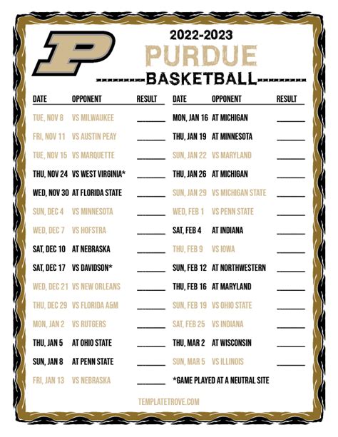 In this digital age, you might be thinking, “Why bother with a printable PDF of the Purdue men’s basketball schedule 2023-24?” Well, let me tell you, guys, there’s a certain magic to having a physical copy. First off, no Wi-Fi? No problem! You can check the game times and dates without needing to pull out your phone or laptop. It’s perfect for when you’re out and about, maybe at a tailgate or a sports bar, and someone asks, “When’s the next Purdue game?” You can whip out your trusty printed schedule and answer with confidence. Plus, there’s something satisfying about physically marking off games as they happen or circling the big ones you absolutely cannot miss. It’s a tactile experience that digital calendars just can’t replicate. Think about it: you can put it right on your fridge, a constant reminder of the thrilling season ahead. Or maybe you want to laminate it and keep it in your car’s glove compartment. The possibilities are endless for keeping that Purdue basketball schedule 2023-24 front and center. It also helps avoid those annoying notification conflicts or app crashes that can sometimes happen with digital calendars. It’s a straightforward, reliable way to stay on top of every game. And let’s be honest, sometimes seeing the whole season laid out in front of you, game by game, opponent by opponent, really builds the anticipation. You can visually track the team’s progress, identify tough stretches, and celebrate the wins. This printable PDF is more than just a list of games; it’s your personal roadmap to an epic basketball season. It ensures you’re always in the loop, no matter where you are or what device you have handy. So, yeah, the printable PDF is totally the way to go for serious fans!