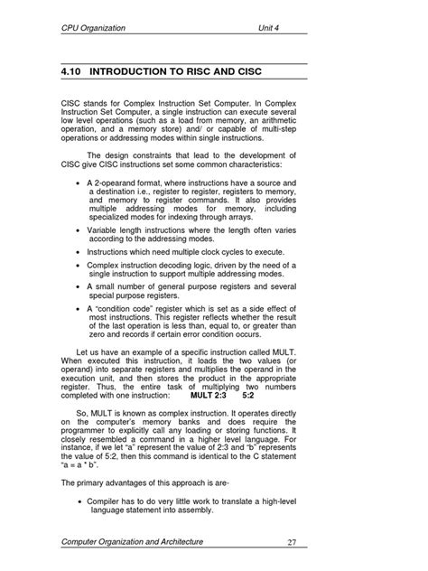At its heart, CISC is a design philosophy for computer processors where each instruction can perform multiple low-level operations. Think of it like a single command that does a lot of work. For example, a CISC instruction might load data from memory, perform an arithmetic operation on it, and then store the result back into memory, all in one go. This is in contrast to RISC (Reduced Instruction Set Computing) , where each instruction is very simple and performs only one basic operation. RISC processors need multiple instructions to achieve what a single CISC instruction can do.