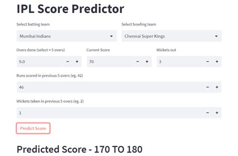 • The Batsmen at the Crease: The quality of the batsmen at the crease influences the PSE. A good combination of batsmen can drive the run rate and increase the projected score. If the team has strong batsmen with a good scoring history, the projected score will usually increase.