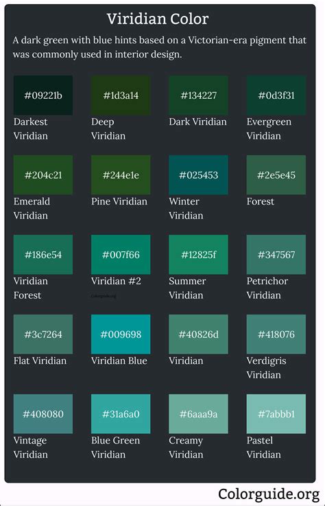 Hey guys! Today, we’re going to dive deep into the fascinating world of viridian color . You know, that gorgeous, deep green that often makes you think of lush forests or perhaps the depths of the ocean? It’s a color that’s been around for ages, and for good reason. It’s not just any green; it’s a sophisticated and rich shade that artists and designers have loved for centuries. We’ll explore its origins, its unique properties, and why it continues to be a popular choice in art, fashion, and even interior design. So, buckle up and get ready to become a viridian expert!